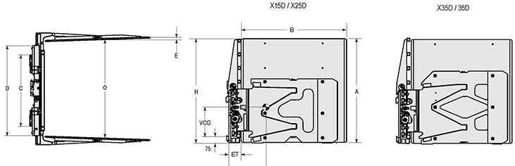 Capacity 承載能力(kg) | Catalog Order NO 型號 | Mounting Class 安裝等級 | Opening Range張臂范圍(mm) | Arm Height臂高A(mm) | Arm Length臂長B(mm) | Vertcial Center Of Gravity垂直重心VCG(mm) | Load Center載荷中心(mm) | Overall Width總寬D(mm) | Hook Spread上鉤外側(cè)間距(mm) | Weight 自重(kg) | Effective 失載距ET(mm) | Horizontal Center of Gravity 水平重心CGH(mm) |