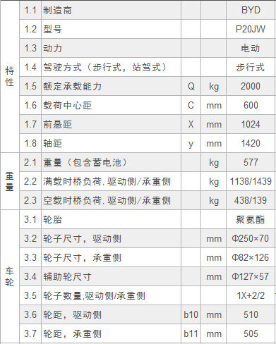 注:為了產品的可持續發展,比亞迪叉車有權修改產品功能和技術參數,恕不另行通知。